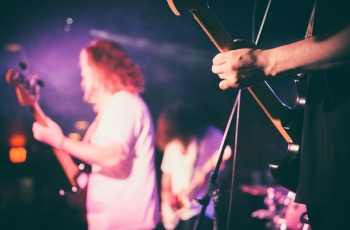 紫色、红色和白色颜料混合在一起的斑点在纸质照片上